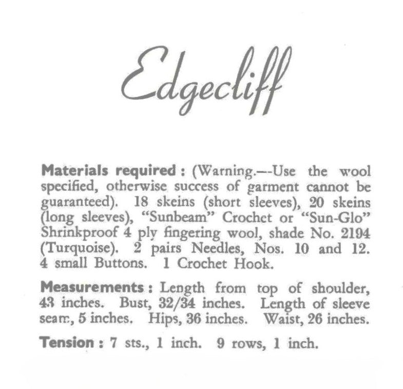 A very stylish 1940's knitted dress pattern. The dress is very flattering, the long ribbed pattern flaring out at the bottom to a lovely soft drape creates a very elegant dress.