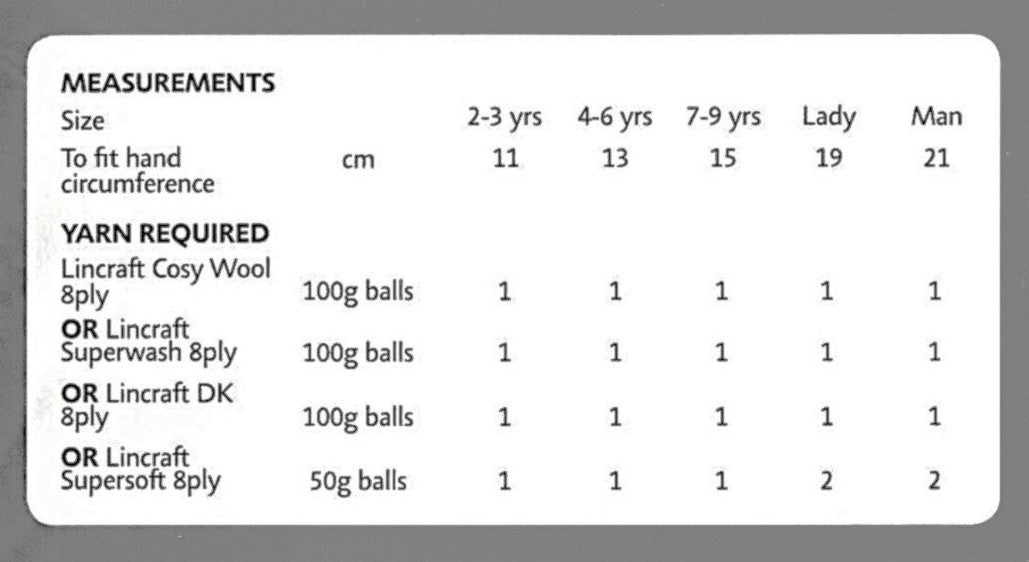 A pattern to make fingerless gloves. A brilliant idea, keep your hands warm but still have the fine use of your fingertips. This is a great pattern, instructions are available for gloves in sizes for children, ladies and men.