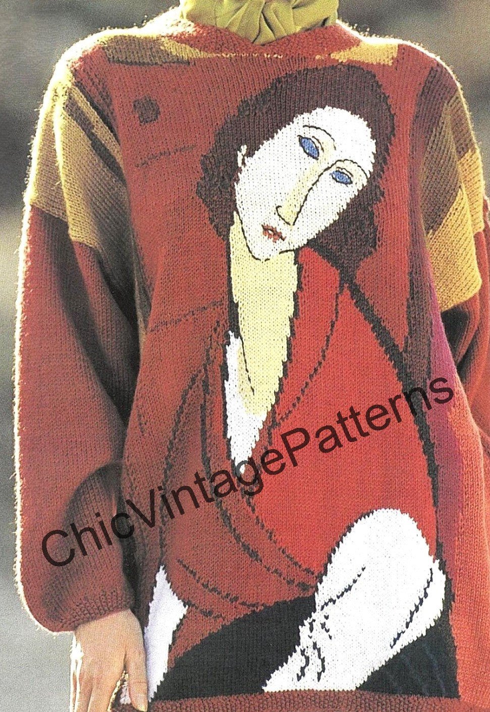 Knitted Jumper Pattern, Painted Lady Picture Knit, Instant Download