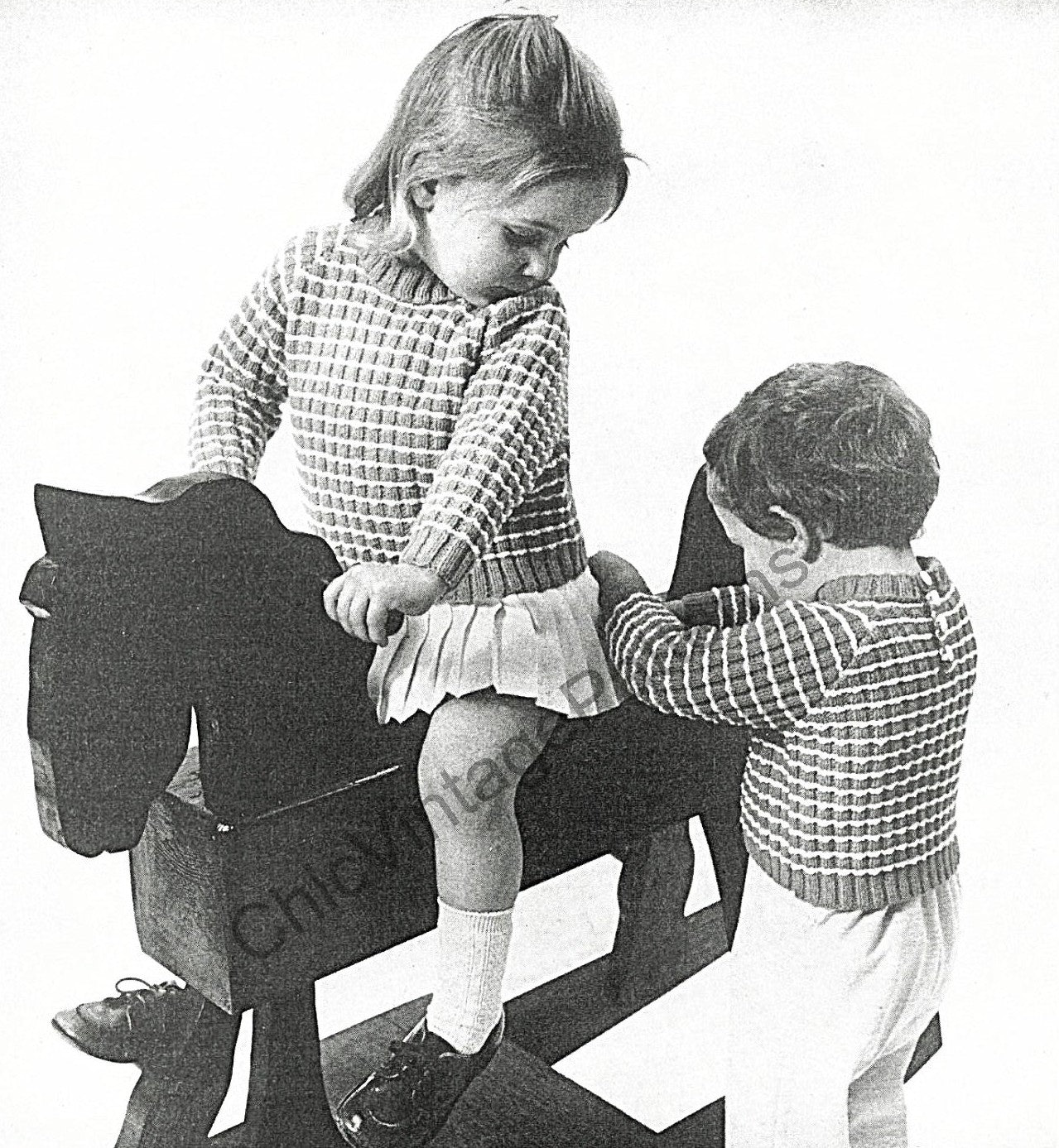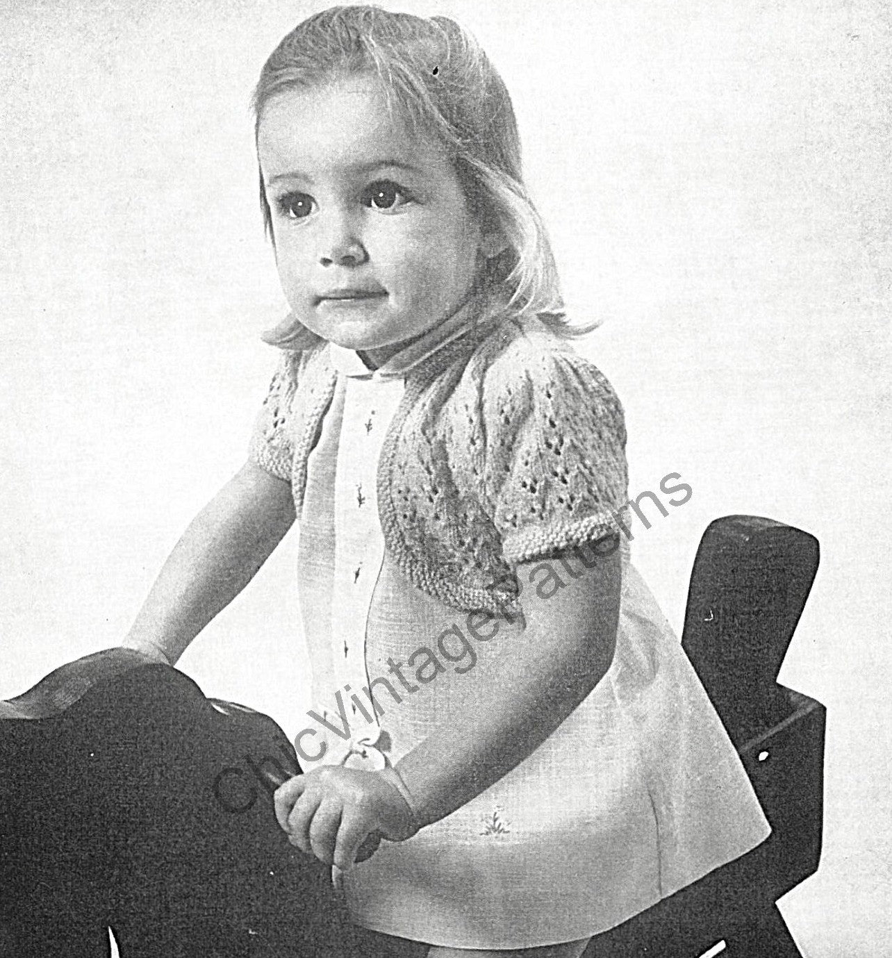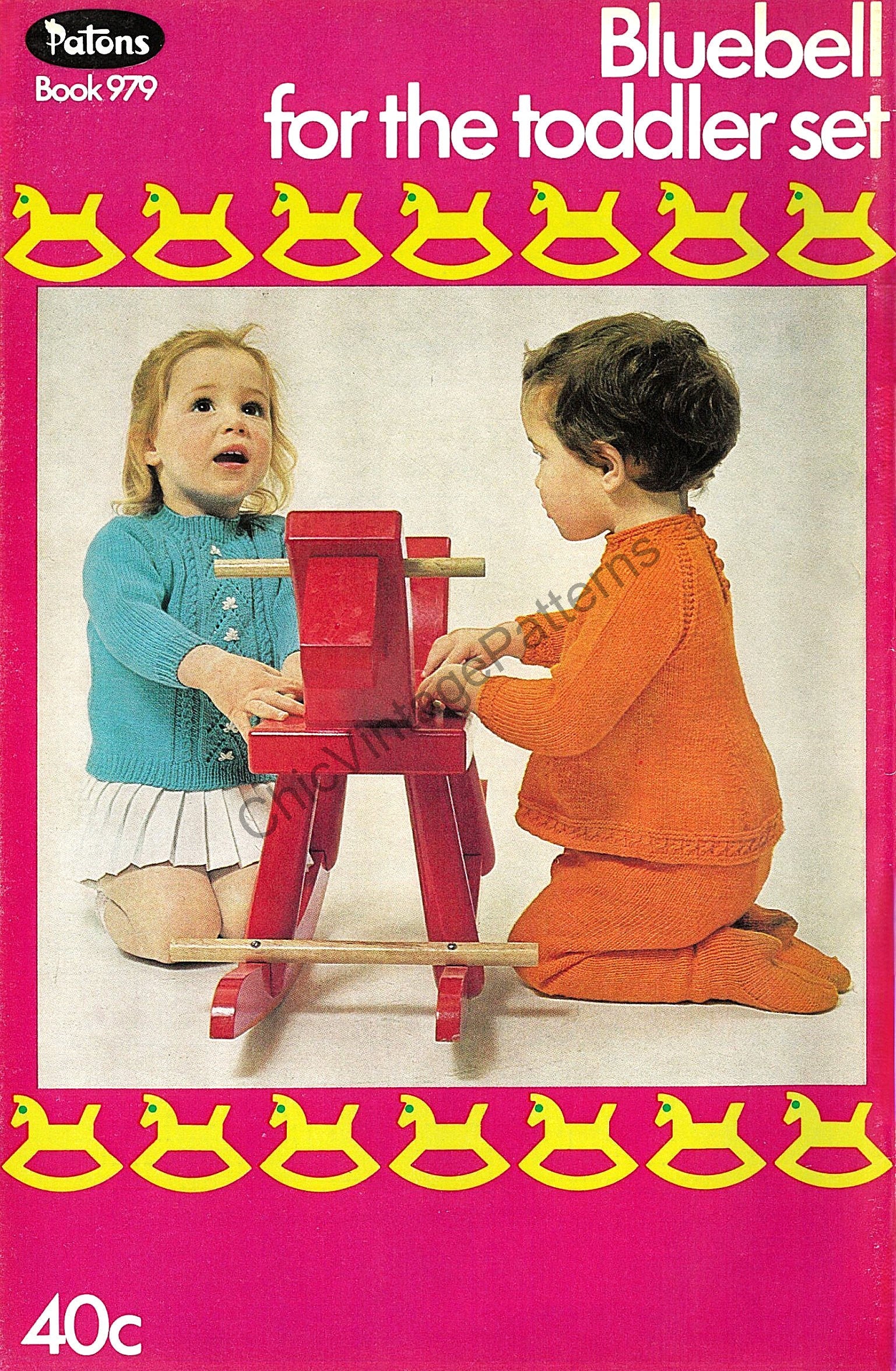 This is the "Bluebell for the Toddler Set" Patons knitting book, No 979. The book features patterns for a cardigan, dress, bolero, jumper, shirt jumper and smock and leggings.